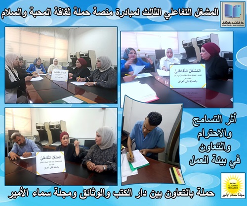 في دار الكتب والوثائق.. المشغل التفاعلي الثالث لحملة ثقافة المحبة والسلام يناقش أثر التسامح والاحترام في بيئة العمل