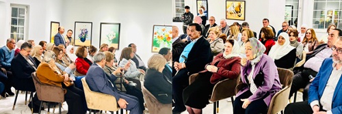 غصّت باحة المعرض بجمهور نخبوي من أبناء الجالية العراقية، من عشّاق الفن التشكيلي ومحبّيه وأصدقاء الفنان ومريديه. وقد تجوّلوا بين أصائص الورود وألوانها، حيث تميّزت معظم اللوحات بقدر عالٍ من الشفافية وصفاء الألوان وقوتها، لتعكس الطبيعة المزهرة ومشاهد من مناطق متعددة من أرض العراق.