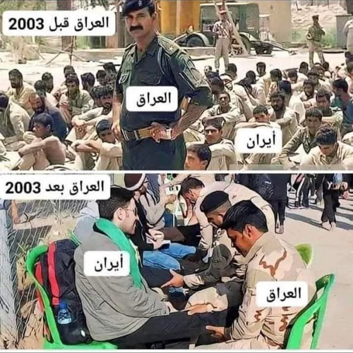 ضابط دمج برتبة مقدم,(عراقي الجنسية), ولكن كل ما عداها ليس له علاقة بالعراق, من رفع علم إيران لصور الدجالين!!. أزِف الوقت لكنس هذه الحثالات وتطهير العراق منها.. بل أقول؛ إن الوقت قد تأخّر كثيرًا!!.