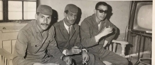 داود الفرحان وزكي الحبة ومليح صالح شكر في استراحة من التدريب في كتائب الشباب