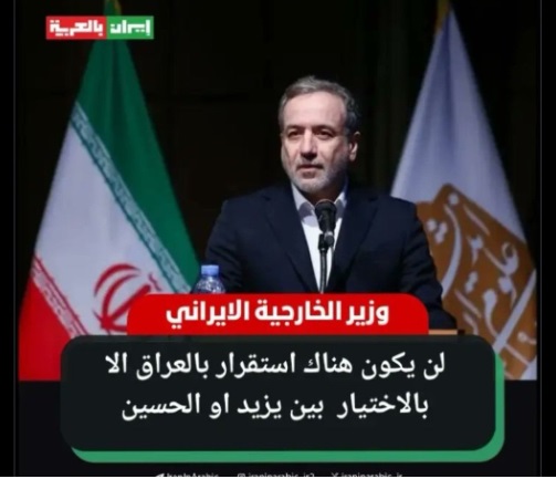 أما(الواجهة الناعمة)للنظام الإيراني المتمثلة بوزير خارجيته(عباس عركجي), فقد صرّح بما يلي؛(لن يكون هناك استقرار بالعراق, إلّا بالاختيار بين يزيد أو الحسين)!!. وهذا ما تجسّد على الأرض بعد احتلال العراق في 2003, بحروب الإبادة الشاملة التي شنتها إيران وميليشياتها في العراق والشام واليمن, وفي كل مكان تطاله(رجسة الخراب)الإيرانية في أرض العرب والمسلمين.