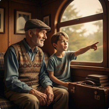 ظل القطار واقفاً لاكثر من نصف ساعة حتى بدأ أمين يتململ وقرر ان يغادر مكانه كي يقف على سبب التأخير. فقال لحفيده،