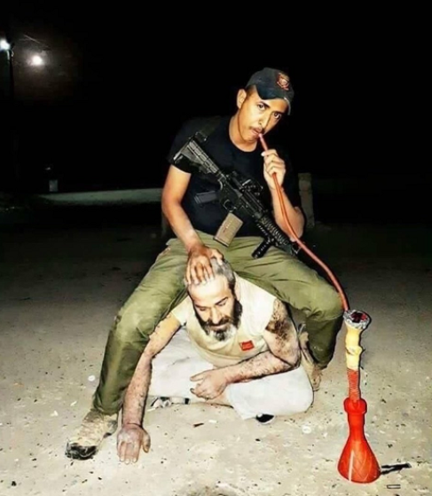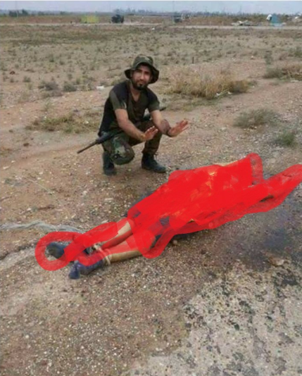 لم يكتفِ بتعذيبه ثم قتله, بل قام بحرق جثته وجلس قربها يتدفّأ, ونشر الصورة على موقعه مفتخرًا!!!. هذا ما فعله المجرم(أبو عباس الحمراني)من ميليشيات أحفاد القرامطة مع شاب سُنّي خلال حرب الإبادة الشاملة بعد 2014.