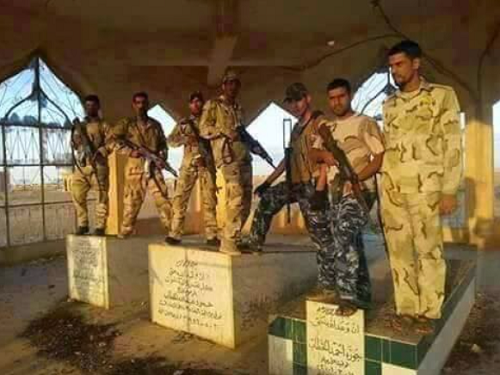 رُوي عن النبيّ الكريم مُحمّد(صلى الله عليه وسلم), إنه قال؛(لأَنْ يَجْلِسَ أحَدُكُمْ علَى جَمْرَةٍ فَتُحْرِقَ ثِيابَهُ، فَتَخْلُصَ إلى جِلْدِهِ، خَيْرٌ له مِن أنْ يَجْلِسَ علَى قَبْرٍ).. حتى مقابر المسلمين لم تسلم من دنس أحفاد القرامطة وأرجاسهم!!.