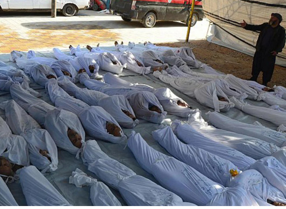 لم يتبقَ سلاح في جعبة المجرم القرمطي بشار الكيماوي وأوباشه لم يَصُبّه على رؤوس السوريين المساكين. ولو كان هذا اللعين بحوزته قنبلة ذرية, لما تردد في استخدامها. وهذه صور لضحايا مجزرة الغوطة بالكيماوي في سنة 2013, حيث قضى الآلاف نحبهم في غضون دقائق بالغاز السام. ولم يتم محاسبة المجرمين, لأن الضحايا من السُنّة!!.