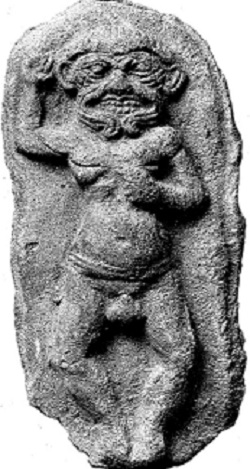 شكل 1: لوحة بارزة من الطين المحروق تصور هوواوا أو همبابا أو خمبابا حارس غابة الأرز (Cedar) التابع لإله إنليل (Enlil)، يُرجح أنها تعود إلى العهد البابلي القديم أو عصر مملكتي إيسن-لارسا، ارتفاع اللوحة (105) ملم.