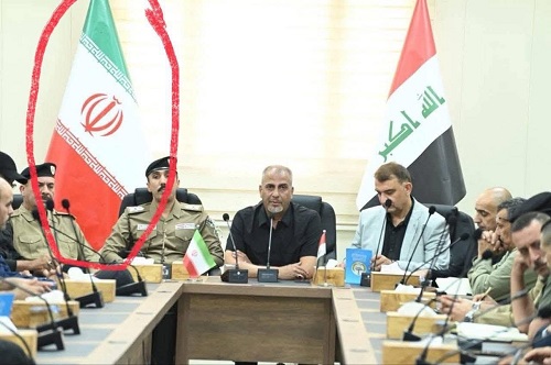 مسؤول إيراني أو عراقي متأيرن, يرفع علم إيران في اجتماع رسمي!!..(خوش سيادة)!!.