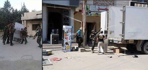 حثالات أحفاد القرامطة يستبيحون المحلات التجارية في تكريت, تطبيقًا لـ(فتوى)مرجعهم الإيراني(كاظم الحائري)بجواز سرقة ممتلكات أهل السنة واعتبارها(غنائم), بعد(تخميسها)!!.
