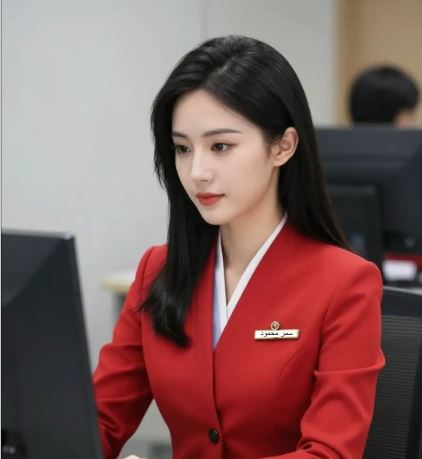 الموظفة : لحظة واحدة لو سمحت. دعني ابحث بالحاسوب.